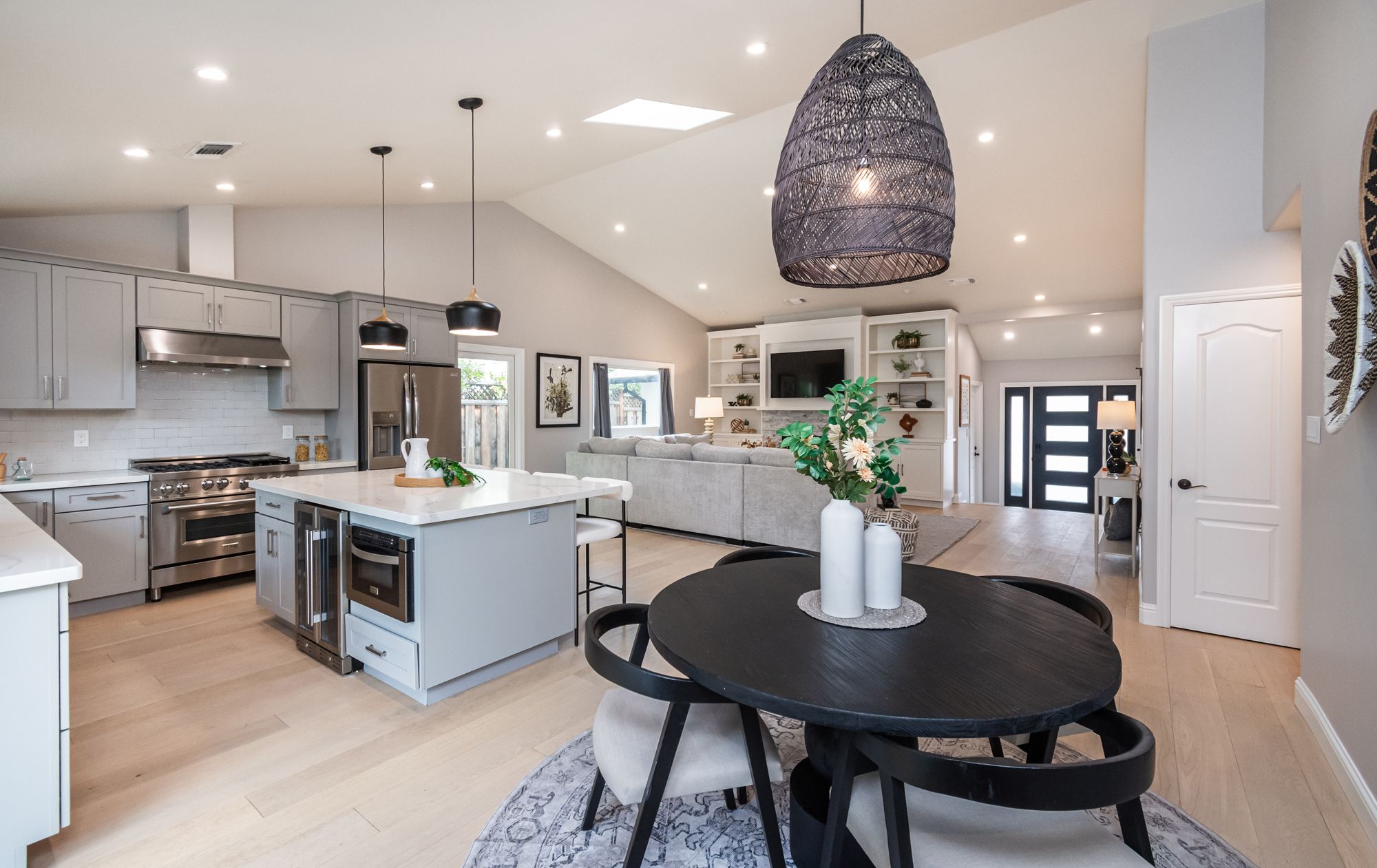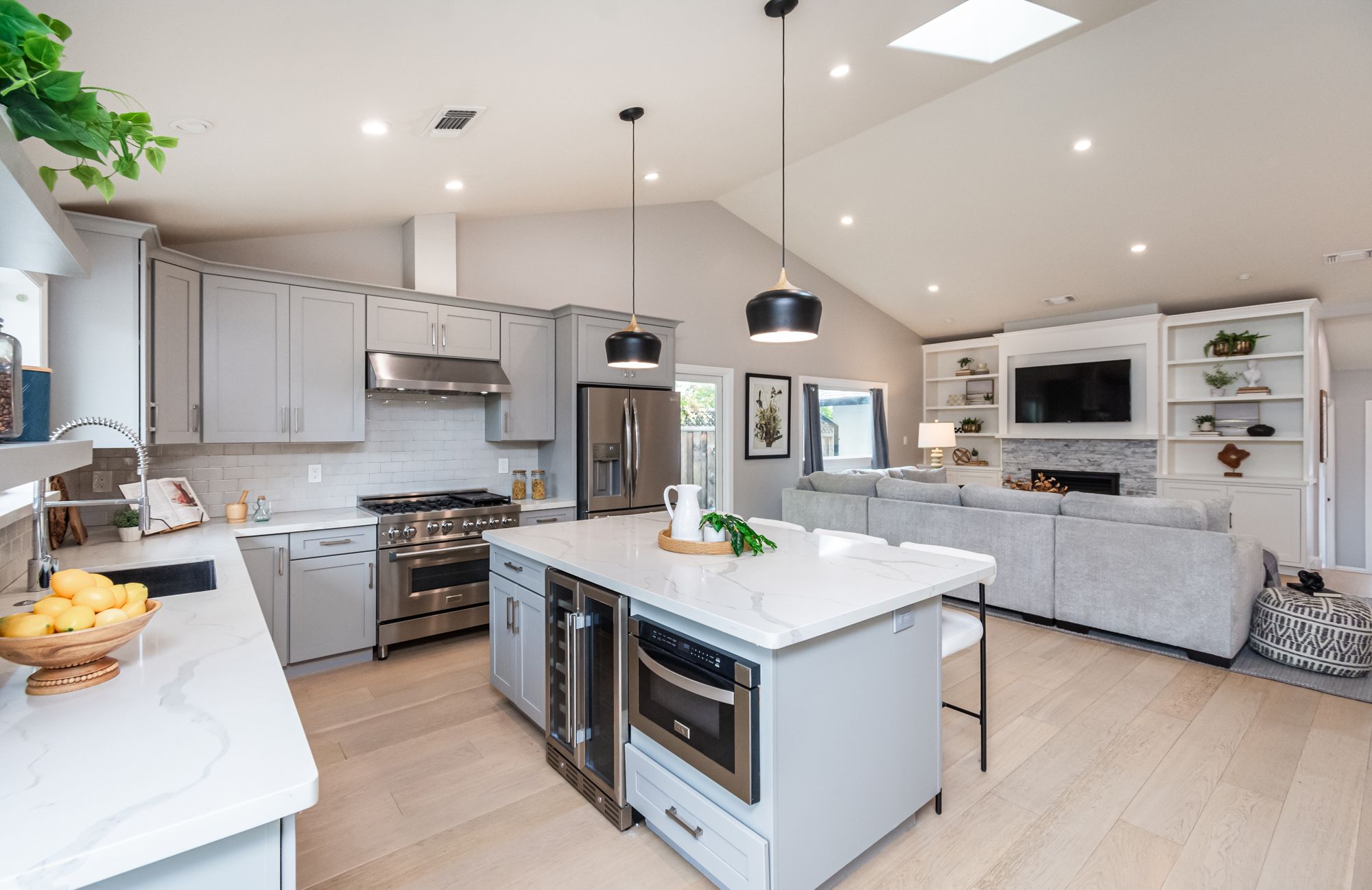 Nestled in the desirable Vineyards Neighborhood, this charming single-level home features three spacious bedrooms and two beautifully updated bathrooms. The open floor plan boasts cathedral ceilings with sky light and a cozy gas fireplace. The newly remodeled kitchen is outfitted with luxury ZLINE appliances; six burner range, built-in microwave and dishwasher. Perfect for entertaining, the large center quartz island includes a built-in wine refrigerator and extra cabinetry. Expansive sliding doors lead to the spacious backyard ideal for outdoor enjoyment. Additional chic upgrades include engineered hardwood floors, recessed lighting and crown molding. Modern systems feature an on-demand water heater and a Nest doorbell camera. The spacious two car garage styled with a new custom door offers ample space for storage or added cabinetry. Enjoy hikes, and play time at the nearby Vine Hill and Alston Parks. Idyllically located in North Napa less than 10 minutes from the quaint town of Yountville and world renowned wineries and restaurants!