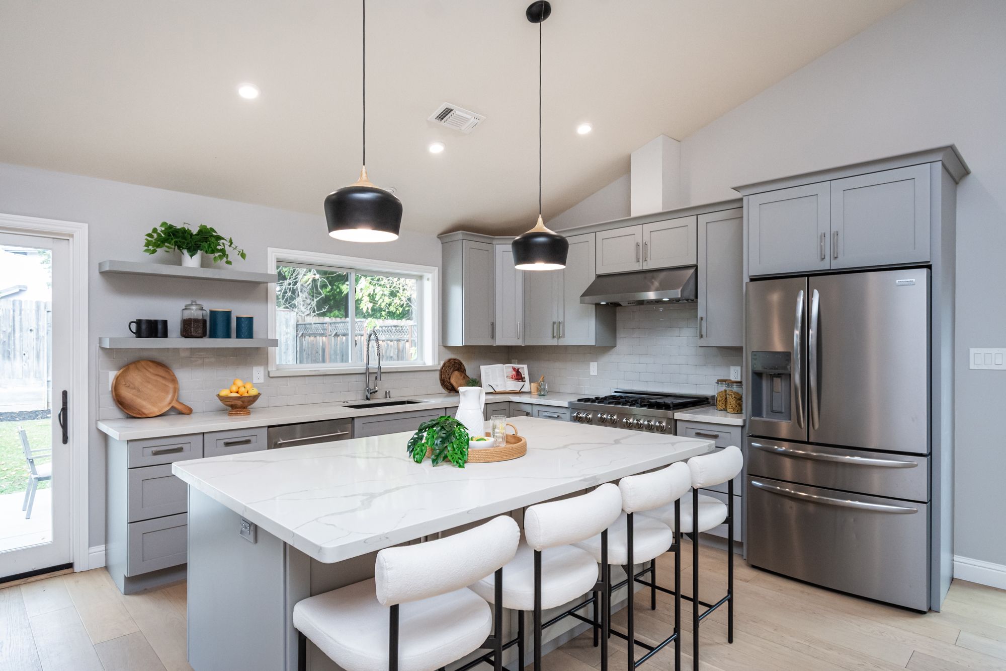 Nestled in the desirable Vineyards Neighborhood, this charming single-level home features three spacious bedrooms and two beautifully updated bathrooms. The open floor plan boasts cathedral ceilings with sky light and a cozy gas fireplace. The newly remodeled kitchen is outfitted with luxury ZLINE appliances; six burner range, built-in microwave and dishwasher. Perfect for entertaining, the large center quartz island includes a built-in wine refrigerator and extra cabinetry. Expansive sliding doors lead to the spacious backyard ideal for outdoor enjoyment. Additional chic upgrades include engineered hardwood floors, recessed lighting and crown molding. Modern systems feature an on-demand water heater and a Nest doorbell camera. The spacious two car garage styled with a new custom door offers ample space for storage or added cabinetry. Enjoy hikes, and play time at the nearby Vine Hill and Alston Parks. Idyllically located in North Napa less than 10 minutes from the quaint town of Yountville and world renowned wineries and restaurants!